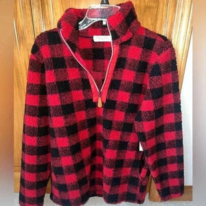 Pink Lily Red Plaid 1/4 Zip Pullover. NWT. SIZE XS