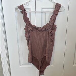 Pink Lily Ruffled Ribbed Bodysuit in Mauve