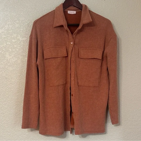 Pink Lily Rust Ribbed Jacket