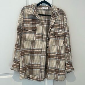 Size medium. Oversized Shacket. Neutral color. No holes or stains.