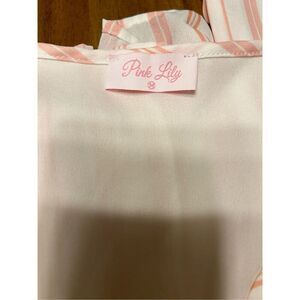 Pink Lily Striped Belted Shorts Romper Pink White Size Medium. See photos for measurement.