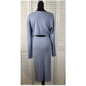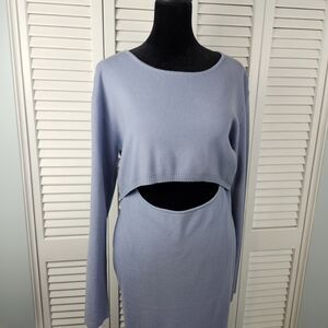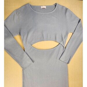 Pink Lily Sweater Dress Light Blue Ribbed Knit Cutout Long Sleeve Bodycon Medium
