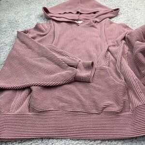 Pink Lily Textured Hoodie -- Oversized -- Cropped -- Hooded -- Pink