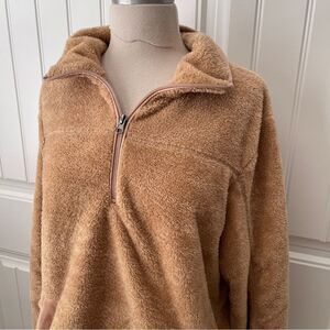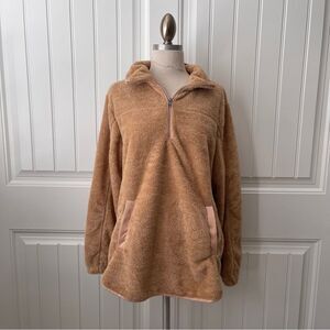 Pink Lily tan super soft sherpa quarter zip sweater. Has two front pockets and a split hem. Perfect for all and winter. 100% Polyester