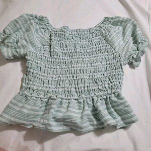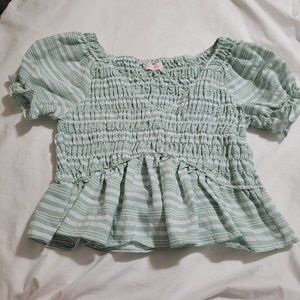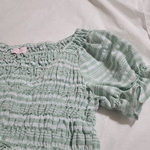 Pink Lily Top XL Short Sleeve Smocked Cropped Peasant Shirt