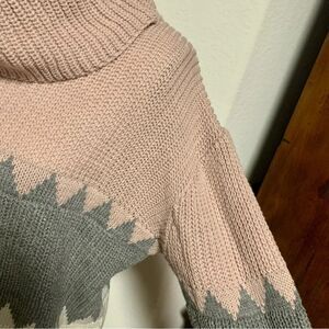 Pink Lily Turtleneck Color Block knit Pullover Sweater Medium