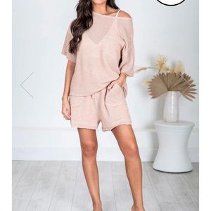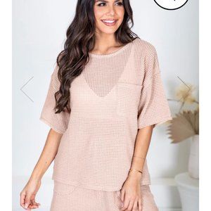 Pink Lily - WORKING ON IT TAUPE WAFFLE KNIT TOP
