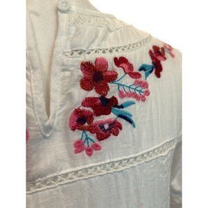Pink Lily White Floral Embroidered Dress Size S Short Sleeve