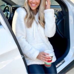 New with tags Pink Lily White Fuzzy Sherpa Hoodie. Size medium. Sweatshirt front pouch pocket