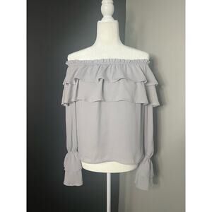 Pink Lily Woman’s Romantic Long Sleeve Ruffled Off The Shoulder Blouse- Size S