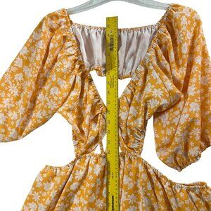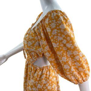 Pink Lily Womens 3XL Yellow Floral Puff Sleeve Cutout Dress Stretchy Resort Wear