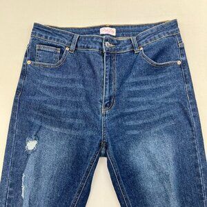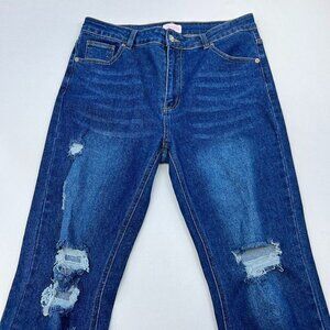 Pink Lily Womens Blue Regular Fit Distressed Denim Boot Cut Jeans Size 31