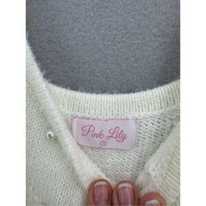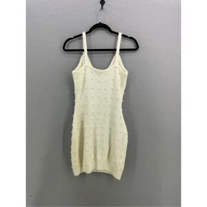 Pink Lily Womens Cream Pearl Embellished Knit Bodycon Mini Dress Size Small