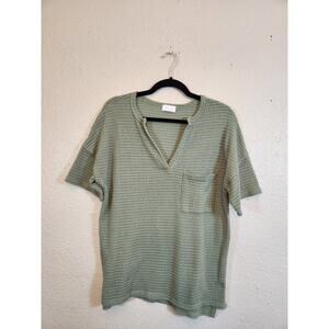 Pink Lily Women's Sage Green V-Neck Waffle Notched Short Sleeve T-Shirt Size S