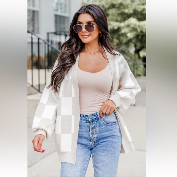 NWOT beige and white oversized balloon sleeve cardigan. Perfect for layering and adding a chic touch to any outfit. ⭐️Excluded from 50% Off Sale