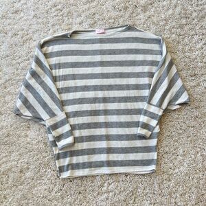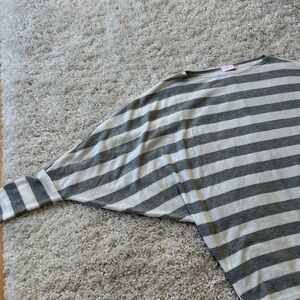 Pink Lily grey and white stripe 3/4 bat wing sleeve soft stretchy top medium