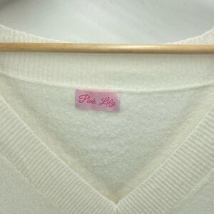 Pink Lily striped Pullover Sweater Long Sleeve V Neck Color Block Beige Large NW