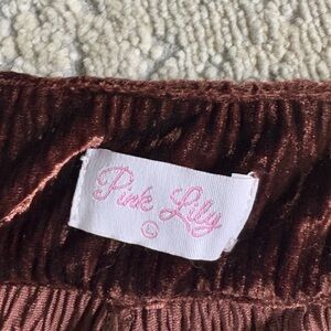 Pink Lily wide leg brown velvet trouser pants high rise large