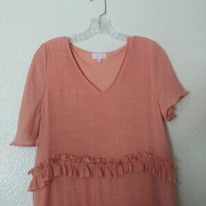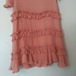 Pink Lily women's M ruffle accent dusty coral colored dress