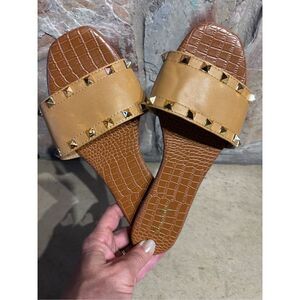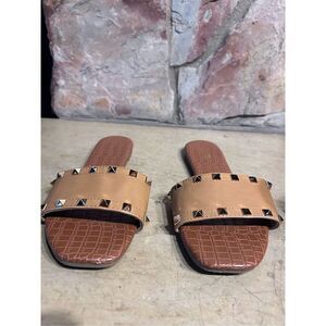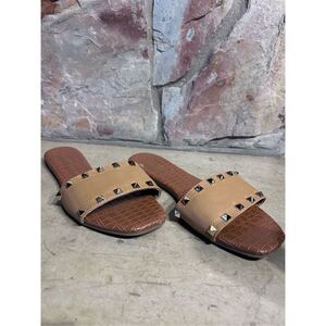 Pink Lily Studded Slides Sandals Tan Brown Square Open Toe Women's US 8.5 EUC
