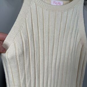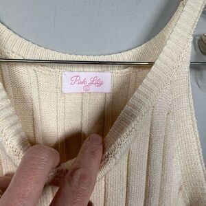Pink Lily round neck ribbed knit sleeveless midi dress size large beige