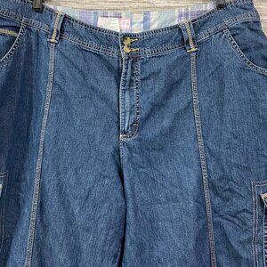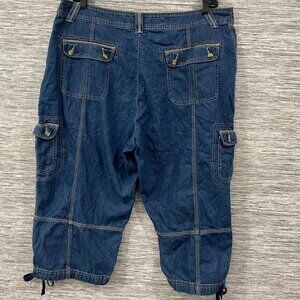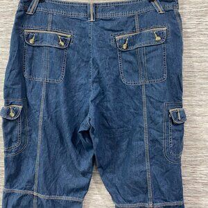Pink Line Plus Size 22 Denim Cargo Capri Pants — Drawstring Hems, Double-Button,