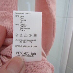 Pink Linen & Cotton PESERICO Italy Sweater with 3/4 Sleeves--Size 40/Medium. Color is showing slightly dark in the first photo as it is actually a very soft, pretty pink as shown better in the balance of the photos. Bust, measured while lying flat and from side to side is 19 inches. In new, unworn condition but without tags it is in excellent, clean condition and will be packed well and shipped from a smoke free and pet free home.
