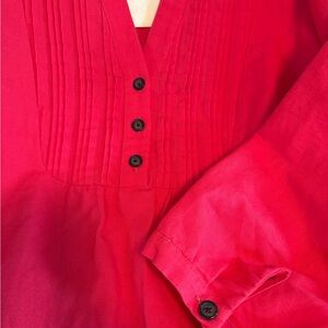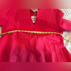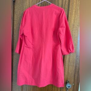 This beautiful linen dress is NWT. Features pintuck details, side zipper, and buttoned cuffs. Heavy linen in a strawberry pink color. It fits so nicely, I’ve kept it longer than I should but just don’t wear a lot of bold color. Ready for someone who will enjoy it.