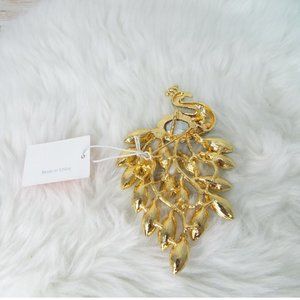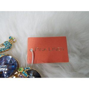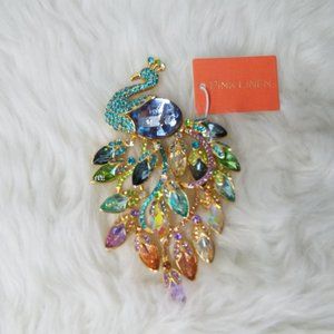 Pink Linen Gold Tone Multicolor Peacock Brooch Pendant