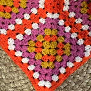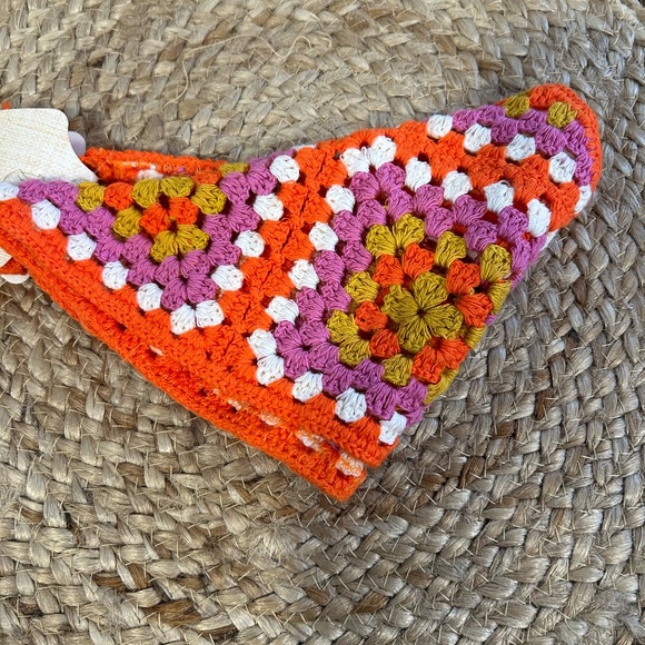 Pink Linen | Multicolor Square Pattern Orange Crochet Bandana