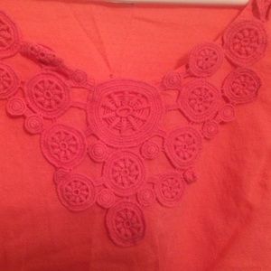 Pink Linen Shirt with Embroidered Pattern at Collar.