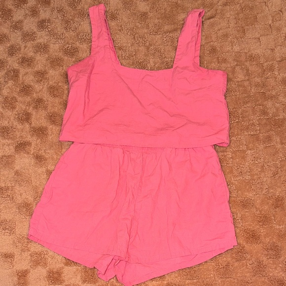 Stylish pink sleeveless Tara crop top size small comes with matching shorts. Only worn handful of time no stains just like new w/o tags. Perfect for casual outings.