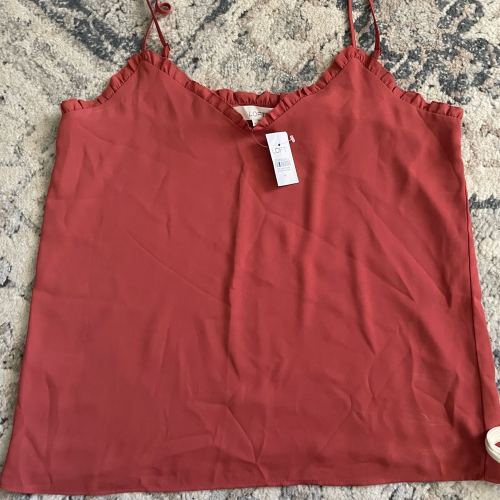 I love this tank top! Pink/red adjustable strap loft, tank top. New with tags. Never worn. Can dress up for date night or works great under a blazer for business casual.