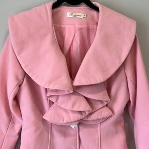 Pink Lolita 3/4 length jacket with lotus blossom collar wool viscose blend