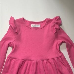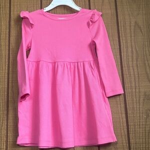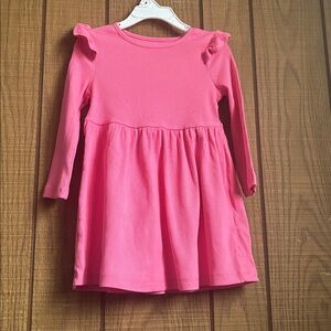 Adorable pink dress with long sleeves and ruffle details. Perfect for any occasion.