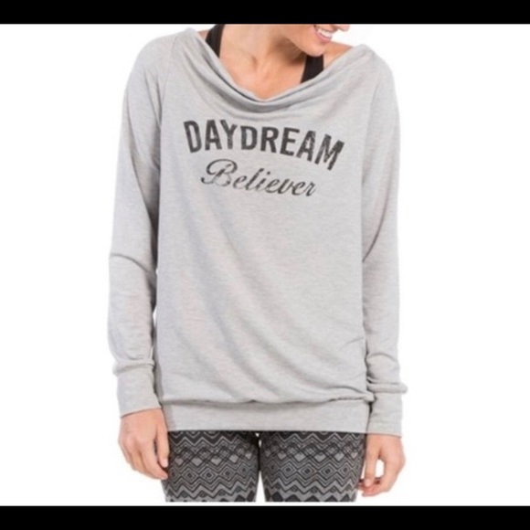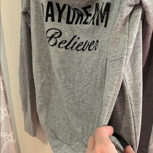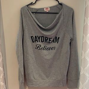 Pink Lotus, new, never worn long sleeve, super soft gray sweatshirt. Daydream Believer. Front pockets perfect for working out or lounging around.