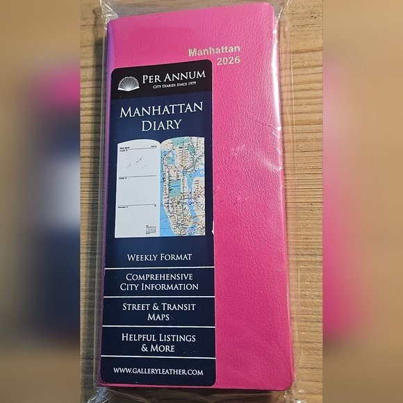 Stylish pink Manhattan diary with city maps and weekly format.