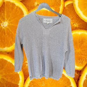 Pink Martini Gray Knit V Neck Sweater with 3/4 sleeve
