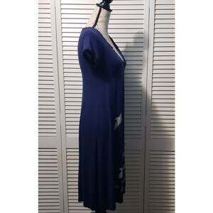 Pink Martini Midi Dress Women's Small Navy Blue Bird Pattern V-Neck Cap Sleeve