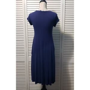 Pink Martini Midi Dress Women's Small Navy Blue Bird Pattern V-Neck Cap Sleeve Ruffle Detail Lightweight