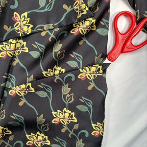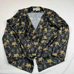 Pink Martini Open Front Blazer Jacket Womens Size Large Black Gold Florals