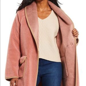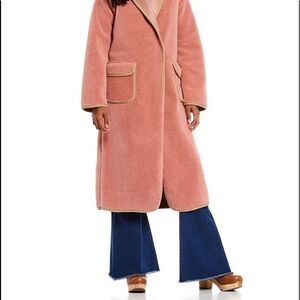 Pink Maxi Cardi Contrast Tape Faux Fur Maxi Coat