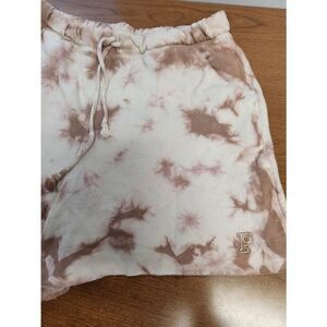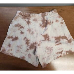 Pink Medium tie dye shorts redish/tan in color with pockets and tie waistband