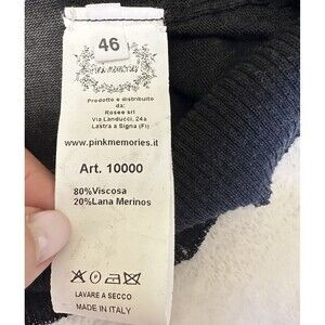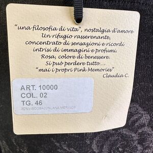 The Pink Memories Women's Black Floral Long Sleeve Light Knit Sweater Top in size 10/46 is a stylish and versatile piece perfect for both party and casual occasions. Made with a blend of viscose and wool, this lightweight sweater features a beautiful floral pattern on a black background, adding a touch of elegance to any outfit. The round neckline and long sleeves make it suitable for all seasons, while the sheer fabric gives it a touch of designer flair. Designed in Italy, this sweater offers a comfortable and regular fit for a chic look.