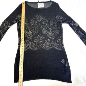 Pink Memories Women's Black Floral Long Sleeve Light Knit Sweater Top Sz 10/46