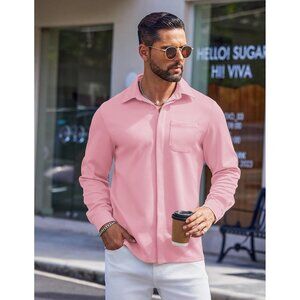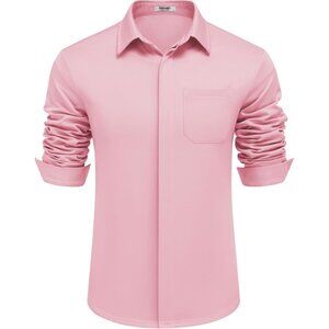 Pink Men's Long Sleeve Wrinkle Free Casual Button Down Untucked Dress Shirt
