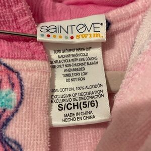 Cozy and adorable pink robe featuring a fun mermaid print and soft metallic accents. Perfect for pool and/or bedtime adventures.