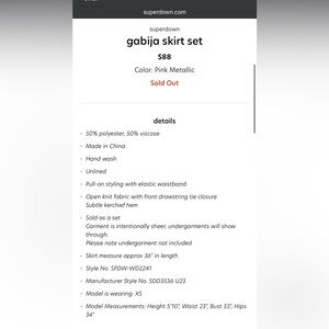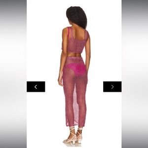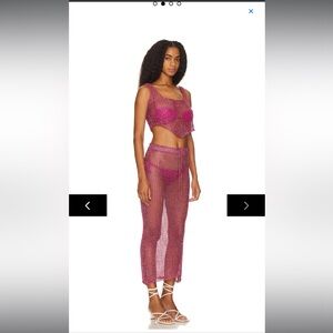 Stylish superdown pink mesh two-piece set. Includes a crop top and skirt. Perfect for a bold look.