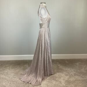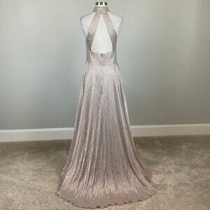 Pink Metallic Backless Long Evening Gown Size 6 Halter Neck Long Formal by AQUA