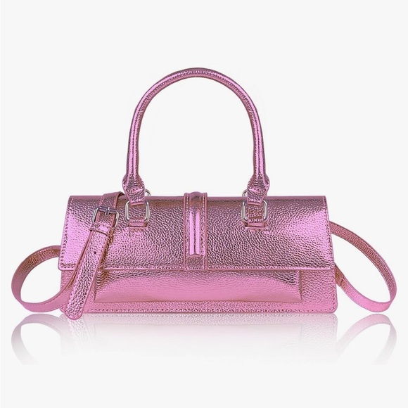 Pink Metallic crossbody bag rectangular shape Y2K style great for night out